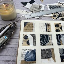 You will explore how your neutral papers work together, starting with three warm-up sketchbook exercises that you'll wish would never end. Then using what you discovered during the warm-ups, you'll create four or more 4" x 4" collages using neutral papers, and finish them by adding a shape that intrigues you.