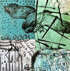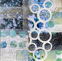 Building on what you learned making the neutral collages, you'll add cool colors to your palette. You’ll begin by creating a collection of cool colored collage papers in different values, and then create two collage grids to see which color combinations speak to you. You'll then use this information to create four or more 6" x 6" collages, adding an image transfer and a shape to finish your mini-series.